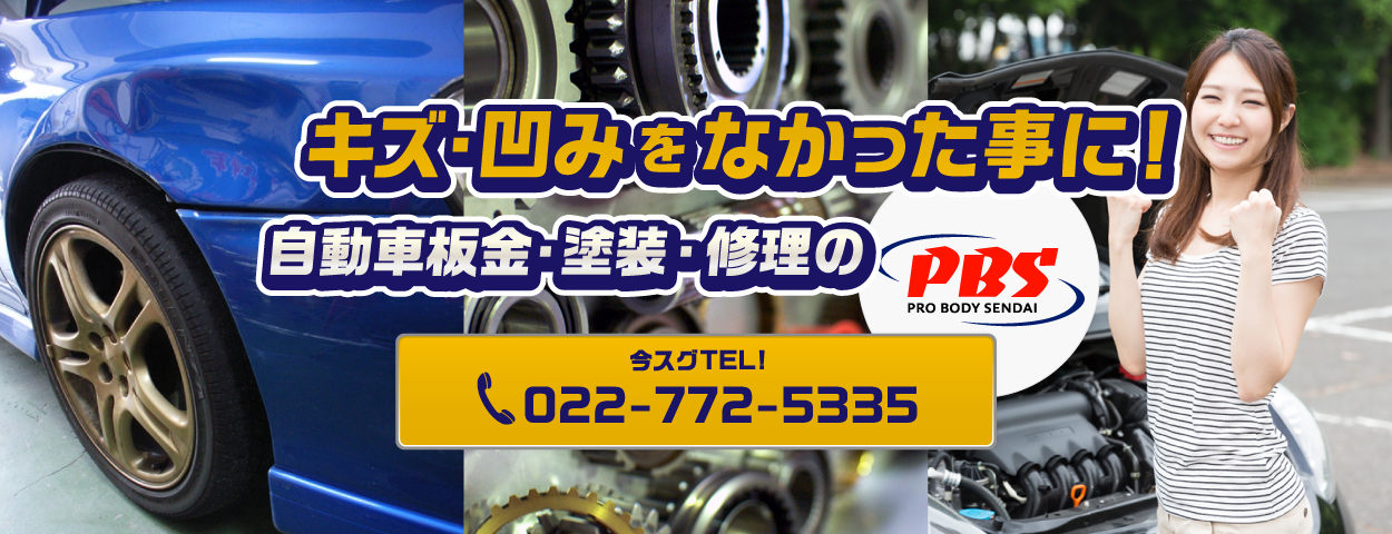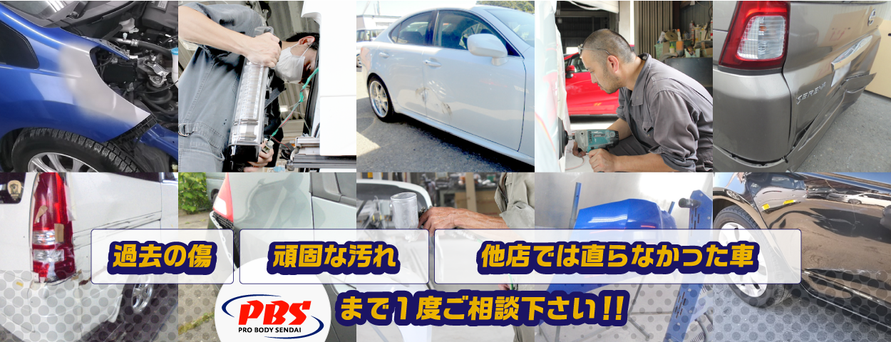 自動車鈑金・塗装、カーフィルム施工、ポリマー加工、自動車ガラス修理、自動車修理、自動車塗装、自動車板金、自動車販売、中古車販売は宮城県仙台市泉区にあるプロボディー仙台株式会社にお任せください。